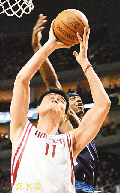 小牛隊的泰利想從後撥走姚明手中皮球。(美聯社)