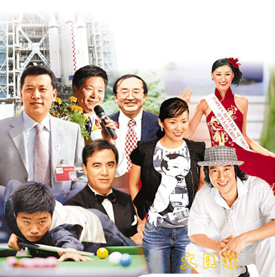 喜愛追星的市民還可以從今天開始好好「過一把癮」,因為內地「十大青年偶像」中的8位也前來參加香港的五四活動。這8位偶像分別是神舟號飛船總指揮袁家軍、獲聯合國教科文組織「薩烏德.侯賽因獎」的數學家陳永川、被稱為「台球圈中的老虎伍玆」的名將丁俊暉、世界著名鋼琴家孔祥東、有「西部新歌王」之稱的民歌歌唱家王宏偉、國際知名影星章子怡、世界小姐關琦和著名流行歌手解曉東,都是內地科學界、體育界和演藝界響噹噹的人物。