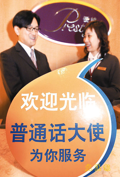 為配合個人遊來港人士需要,恆生銀行設立普通話大使服務。(李志樑 攝)