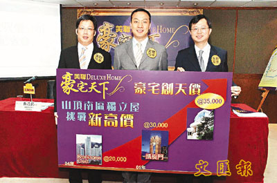美聯物業集團執行董事陳坤興表示,豪宅呎價屢創新高,以凱旋門為例,最高呎價達3.1萬元,較同區二手物業呎價高逾一倍,反映目前買家可接受的溢價幅度,亦較九七年的兩至三成已大大調升。再者,目前已有二手洋房呎價突破九七年,因此預期一手優質獨立屋的成交價將有更大上升空間,尤以山頂南區的新盤備受看好,呎價可望挑戰3.5萬元。