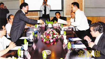 受簽訂100萬部手機合約刺激,屹東昨日股價最高曾升兩成。圖為當日簽約儀式。