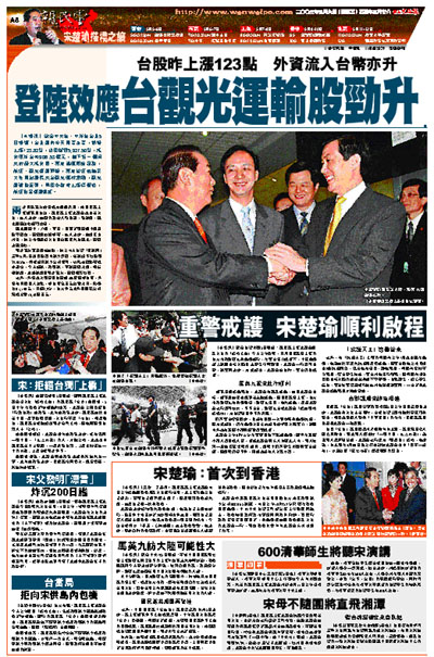 [2005-05-06] 宋楚瑜搭橋之旅.登陸效應台觀光運輸股勁升 放大圖片