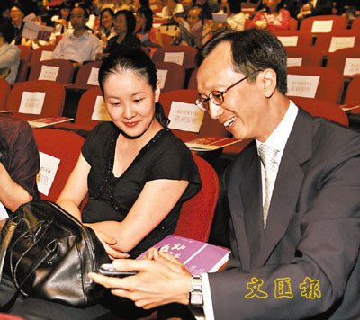 伏明霞是清華校友,由丈夫梁錦松陪同出席「清韻華情」晚會。 (劉國權 攝)