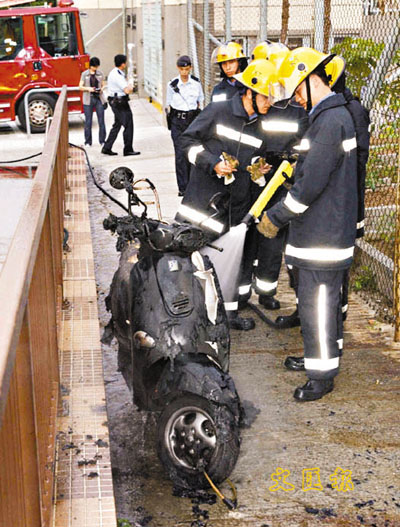 牛頭角 早晨6時 電單車起火 燒成爛鐵 (圖)