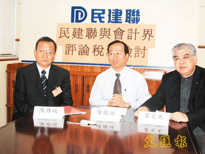 民建聯陳維端(左起)、陳鑑林、黃定光談稅制檢討要審慎從事。