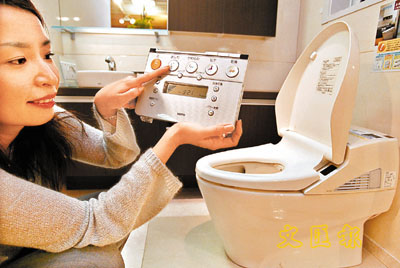 日本一間公司在東京展示Neorest SD廁所的控制系統,這個擁有噴水衛生功能的坐廁售價為74,000至372,000日圓(約5,600至28,000港元)。 (歐新社)