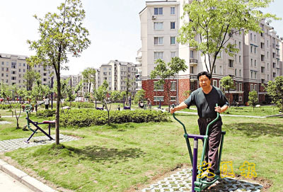 圖:為調控過高房價,杭州市政府近日出台相關政策,明確規定城區農民住宅獲產權後可上市交易。此舉將為杭州樓市二級市場輸送數百萬平方米價格低廉的房源,緩解供需壓力,從總體上抑制杭州過高的房價。圖為合併了6個村近500戶的農民杭州市望月社區,每戶農民有3到4套公寓式房產。 (新華社)