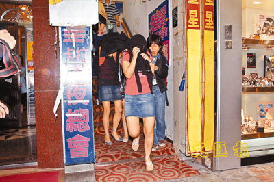 【本報訊】旺角洗衣街一間卡拉OK夜總會掛羊頭賣狗肉,涉嫌從事賣淫活動,警方昨晚派員假扮嫖客光顧「放蛇」,拘獲16名男女,包括12名妓女,其中兩人為剛滿16歲雛妓。