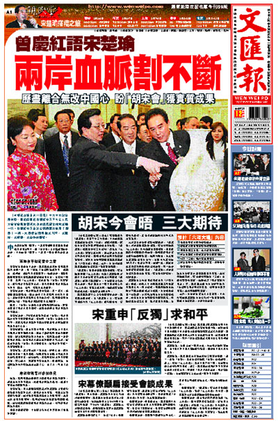 [2005-05-12] 宋楚瑜搭橋之旅.曾慶紅語宋楚瑜:兩岸血脈割不斷 放大圖片