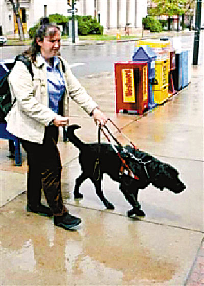 哈欽森太太拖著導盲犬走路。 (網上圖片)