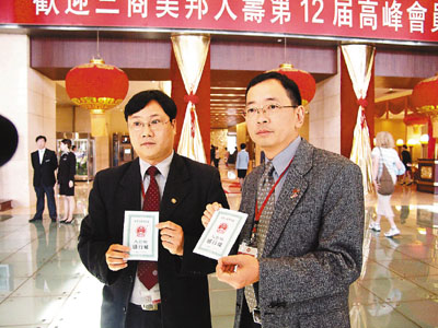 【本報北京新聞中心記者韓笑13日電】是次區議會訪京團成員中,民主黨2位區議會副主席獲發一次性通行證入境,包括灣仔區議會副主席謝永齡、九龍城區議會副主席陳家偉。他們均認為這是一個好開始。
