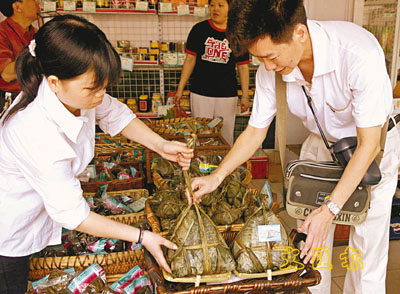 端午節臨近,廣州中山七路一粽子專賣店亮出鮑參翅作餡的裹蒸粽,售價為2,292元。(中新社)