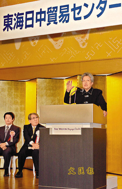 國務院副總理吳儀18日在東海日中貿易中心50周年慶典儀式上講話。 (新華社)
