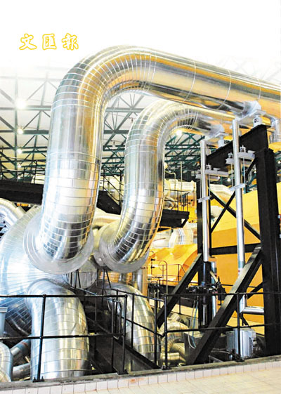 大亞灣核電站安全運行10周年。累計發電1400億千瓦時。圖為核電站汽輪機蒸汽管道。