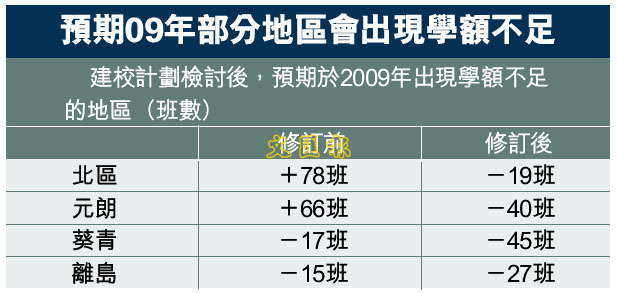 [2005-05-25] 預期09年部分地區會出現學額不足