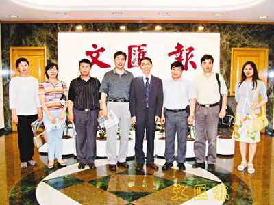中國新聞社北京總社事業發展中心主任牛孟軍(左四)率領該社福建、新疆分社一行與香港分社副總編輯梁玉驥(右三)日前到本報拜訪及參觀,受到本報副總編輯劉曼軍(右四)熱情接待。