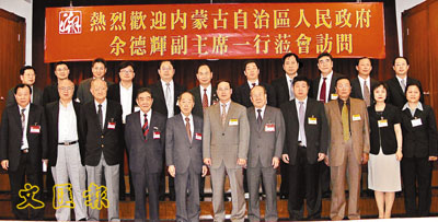 【本報訊】(記者 鄭群)香港潮屬社團總會日前在會所歡迎以內蒙古自治區副主席余德輝率領的經貿代表團到訪,賓主就內蒙古投資環境廣泛交換意見,賓主希望加強聯繫與合作,共同推動港蒙兩地的經濟發展。