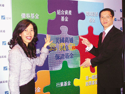 美國萬通保險亞洲宣布推出「美國萬通利息保證基金」。左起︰美國萬通市務部高級副總裁蕭莉玲、葉嘉年。 (陳嘉文 攝)