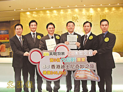 長實劉啟文(左三)稱,周末原價推8伙。(梁悅琴 攝)