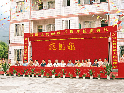 石聯大同學校興建於1999年,2000年5月28日落成,全校佔地面積4807平方米,建有教學樓、教師宿舍各一幢,內設教師辦公室、校長室、儀器室、體育室、學生閱覽室。多年來,經過師生的共同努力,學校教學質素不斷提高,現成為「縣一級學校」,並培養出一批品學兼優的學生,如鄭文星同學曾獲全國英語組競賽三等獎等。