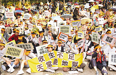 部分教育界人士批評教統局一面殺校一面建校,甚至上街遊行表達不滿。 (資料圖片)