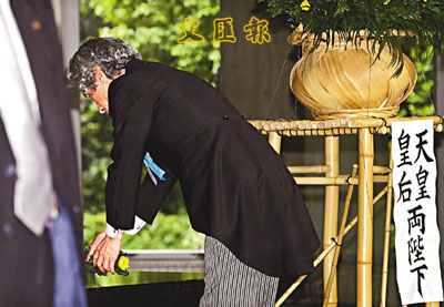 小泉首相在大雨中來到皇宮護城河畔的千島淵墓園,向新葬於園內的300多名無名軍人骨灰獻花,儀式中,小泉未發表任何談話。千島淵墓園內葬有大約35萬名二戰陣亡日兵,新入園骨灰主要來自東南亞及太平洋島嶼的陣亡士兵。