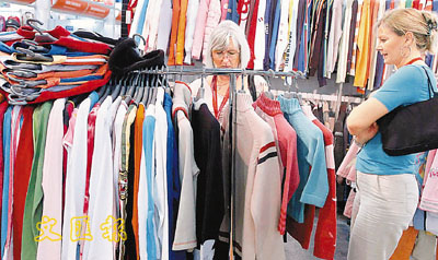 外國遊客在廣交會上挑成衣。(資料圖片)
