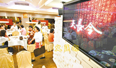 《大長今》魅力沒法擋,連酒樓亦用大電視播映,以招徠食客。(張立新 攝)