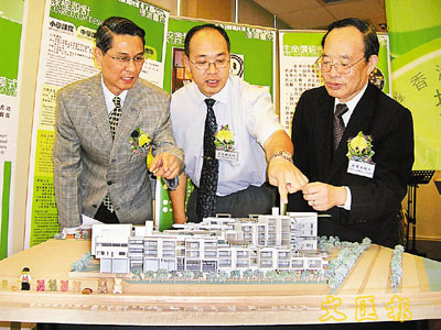 ■播道書院將於將軍澳設立一條龍中小學,圖為辦學團體負責人觀看學校模型。 黃錦佳 攝
