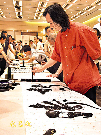 湖南著名書法家何滿宗、陳羲明及顏家龍等,更邀請數名本地書法家一同即場獻技,互相交流書法心得。多位大師隨即取出文房四寶,揮動毛筆,勾下多幅雄渾有勁的墨寶。中國書協理事兼書法家陳羲明寫下蘇東坡的「鴿濤拍岸」四字,比喻香港景色迷人,維多利亞港的風光更是揚名天下。