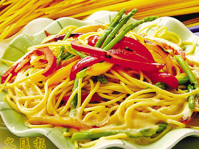 日式麵豉汁煮有機意粉伴露筍 有機意粉比普通意粉含有較多維生素,配合以香濃忌廉煮成的日式麵豉汁,加上新鮮清甜的露筍,是健康的首選。