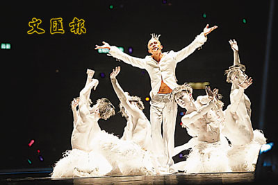 【本報訊】(記者 李思穎)郭富城「飛越舞林演唱會二部曲」前晚展開第二場,不少圈中人都有前來捧場,計有陳慧琳、陳奕迅和徐濠縈、李嘉欣、林曉峰夫婦、奚仲文等,他們對城城演出讚口不絕,尤以陳慧琳和Eason對「弗」到爆燈的城城大讚,Kelly更忍不住說:「城城的衫咁Fit、Fit到我都可以穿。」Kelly睇足全場,更投入得脫下外套,只穿上小背心,不斷揮動棒棒和吹口哨打氣,這晚城城舞姿更狂野,又不斷自摸,而「乳飾」改貼在左胸,更為顯眼,當完場時 升降台發生故障,城城便不斷向觀眾揮手拜拜。