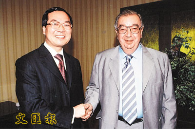 ■許智明(左)與俄羅斯前總理普里馬科夫握手言歡。