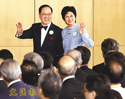 ■曾蔭權偕夫人出席800選委答問會,伉儷一起向在座選委親切揮手打招呼。 張立新 攝