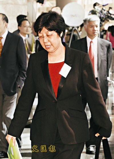 ■蔡素玉答問會上問曾蔭權在炎炎夏日可否脫去煲呔支持環保。張立新 攝