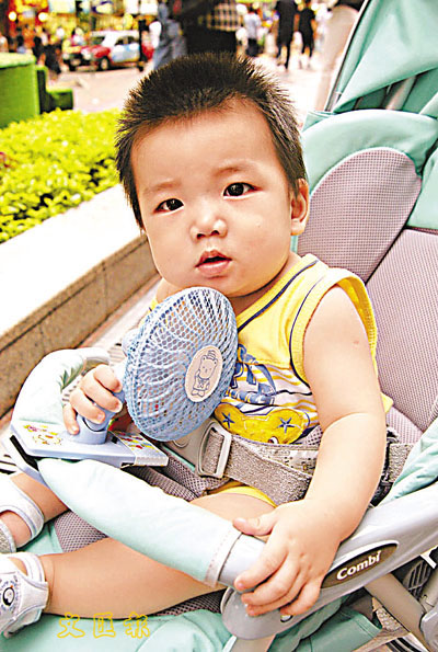 ■天氣炎熱,連嬰兒車也要安裝小風扇,給寶寶扇涼。李志樑 攝