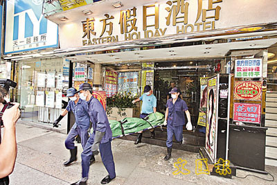 事發現場為彌敦道近弼街一間酒店。昨午12時45分左右,死者致電其妻表示交待後事,且有輕生之念,未幾將電話掛斷,其妻遂根據電話來電顯示,發現丈夫身處一間酒店內,遂聯絡酒店職員,但遭職員以私隱為理由拒絕透露房間資料,死者妻子只好將事件告知酒店職員,職員聞訊後立即前往房間調查,發現死者租住的房間反鎖,從隙縫看到死者用腰包的長繩在消防花灑吊頸,於是立即報警。