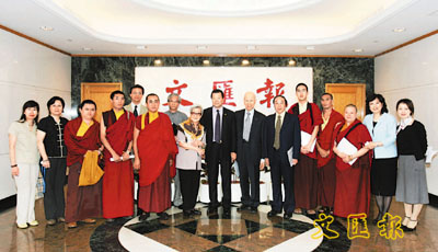 【本報訊】(記者 梁曉睿)香港佛教聯合會、噶瑪迦珠(香港)佛學會、佛國密乘中心及創古密宗中心一行14人,日前到訪本報,雙方商談了即將舉辦的「雪域明珠.中國西藏文化周」活動籌備細節,受到本報張國良社長、劉永碧副社長等報社領導的熱情接待。