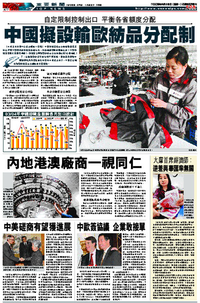 [2005-06-13] 中國擬設輸歐紡品分配制 放大圖片