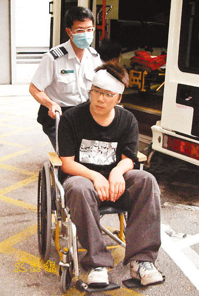 【本報訊】海防道九龍公園一個中電變壓站旁邊,一棵高逾15米的大樹,其中一節長3米,直徑3吋粗在樹丫突在強風中折斷墮下,剛好擊中一名經過的19歲姓張男途人頭部,他前額受傷送院。