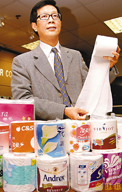 消委會最近測試市面上26款卷裝廁紙,包括16款3層紙及10款雙層紙,每包有8至16卷,售價由7.9至35.9元不等。測試顯示,「皇牌潔柔C&S三層紙」評分最高,「超值牌Best Buy衛生紙」在強度及拉力方面的表現較差,得分最低。