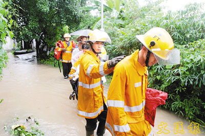消防員涉水入村救人