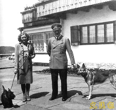 希特拉與情人攝於別墅外花園。