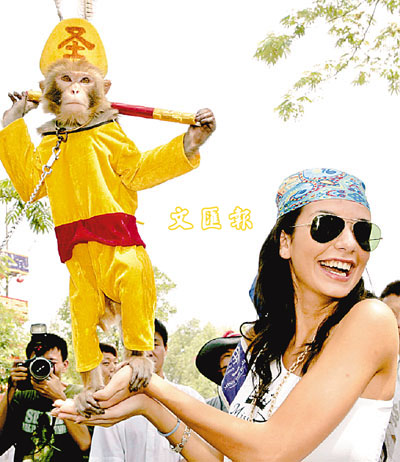 笑容如此燦爛的國際旅遊小姐參賽者,大聖爺也不忍下手吧?說不定助她一臂,送她上西天,不,杭州去參加總決賽呢! (美聯社)