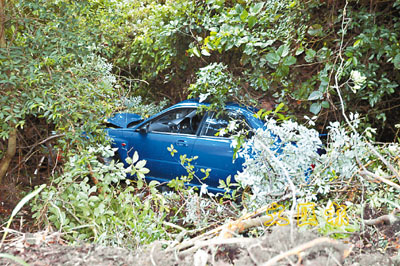 跑車失控撞壆衝落山坡 (圖)