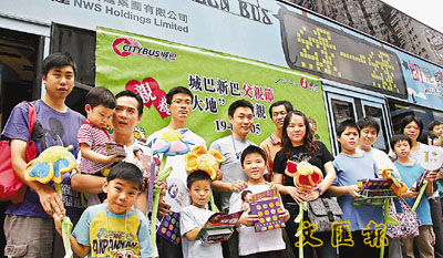 港人過父親節,一般都是一家到酒樓飲茶吃飯,但昨日就有10個家庭,在香港仔巴士站過了一個充滿生態冷知識的父親節。為宣揚環保訊息及促進和諧親子關係,城巴及新巴昨日於香港仔巴士總站展出兩輛「綠一綠」環保教育巴士,同場更舉行「城巴新巴親親大地 親親爹瓊」環保冷知識問答比賽,讓父母與兒女一起贏取「環保種子」、「動物環保大使」及巴士模型等豐富獎品。記者 甄健輝、趙焜崗 攝