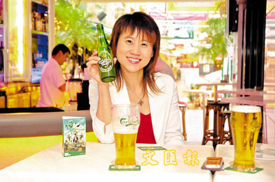她如數家珍地說:「如果你想要入口較順滑爽口,可選嘉士伯生啤;trendy點可選擇嘉士伯Chill;喜歡味道濃厚有金牌嘉士伯。此外還代理多款其他品牌,如大眾化的有獅威啤酒;愛新鮮口感有Tuborg及德國入口生啤Holsten;泡沫較豐富兼麥芽味濃的英國Telley's Bitter;還有形象高檔次的GUINNESS黑啤。」關玉華雙手一高一低舉起代表不同層面的市場說:「這即是我們的供應,由大眾化到高檔次啤酒都包括在內,在中西式食肆、酒吧、卡拉OK或家中等,不論是在什麼場合都有合適的選擇提供。甚至不飲酒的人士也照顧得到,我們有Jolly Shandy攻家庭及後生仔市場。」不說不知嘉士伯原來負責那麼多品牌的銷售及推廣。