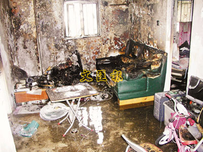 昨日下午2時許,任職銀行銷售員的姓楊住客因放假留在居所,當他睡醒準備按動電視機的開關掣看電視時,發現電視機並無反應,於是再按一次,電視機即冒煙起火,他立即拔掉接駁電視機電源,但仍無阻火勢,大驚下逃離火場,跑到樓下通知看更報警。