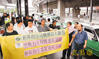 【本報訊】(記者 潘頌禧)大約60名新界的士司機昨早罷駛,抗議輕型客貨車於機場客運大樓非法兜客,更以比的士平逾4成的價格,接載乘客前往落馬洲等口岸及過關,搶走的士業界近8成生意。他們要求機管局及警方加強執法。機管局回應說,當局會檢討現行措施,並會繼續打擊所有違規經營。