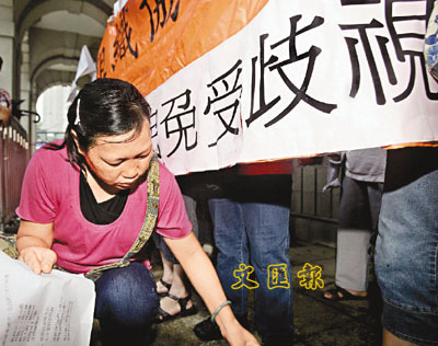 香港社區組織協會代表昨日到立法會門外請願,要求當局執行聯合國經濟、社會及文化權利委員會的審議結論,盡快就種族、性傾向及年齡歧視方面立法,同時立法保障內地新來港人士、少數族裔及外籍傭工。 劉國權 攝